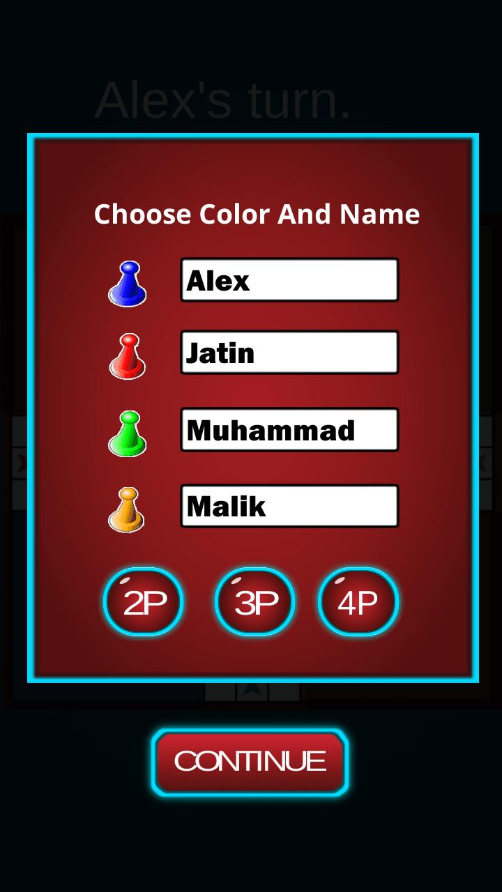 Ludo es un juego de mesa jugado entre 1 y 3 jugadores virtuales.