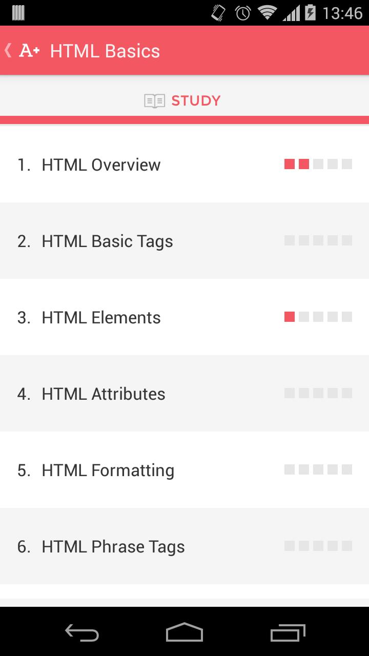 Le langage de balisage HTML ou Hypertext est le langage de balisage standard utilisé pour créer des pages Web. HTML est écrit sous la forme d'éléments HTML constitués de balises enfermées dans des supports d'angle. Cette application de tutoriel HTML gratuite vous aidera à apprendre HTML. Ce cours HTML vous aidera également à concevoir une page Web à l'aide de HTML. Cette application sera utile pour les personnes qui sont des débutants HTML ainsi que pour ceux qui travaillent sur la programmation HTML.