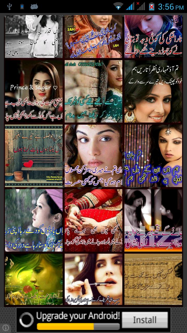 Urdu Love Shayari est purement pour les vrais amants pour exprimer leur amour pour leurs partenaires ou leurs proches. Romantique, expressif et plein d'amour en ourdou. Love Shayari Collection avec des images. Photos attrayantes avec Urdu Shayari selon votre humour et votre intérêt. J'espère que vous l'aimerez et partagerez avec des amis et des boursiers et spécialement avec votre amant.Quoi de neuf dans la dernière version 5.2