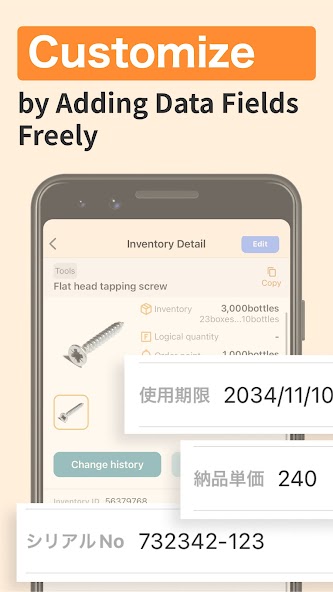 Scannez les codes à barres / codes QR avec votre appareil photo pour smartphone pour rechercher, stocker et retirer efficacement les marchandises et les fournitures et faire l'inventaire. Les codes QR peuvent également être facilement créés.