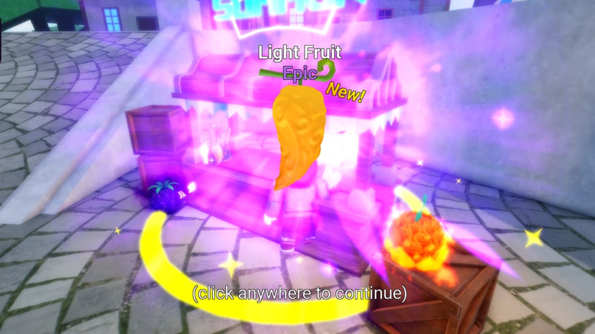 โปรดทราบว่าคุณสามารถรับผลไม้ได้โดยการโต้ตอบกับผลไม้ NPC ที่ตารางการอัญเชิญในล็อบบี้หลัก ที่นั่นคุณสามารถซื้อชุดผลไม้ด้วยอัญมณีที่หายากซึ่งสามารถรับได้ฟรีโดยใช้รหัสที่สามารถแลกได้เหล่านี้