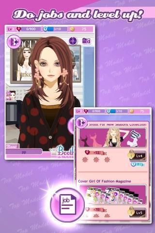 In Top Models, you do professional makeup for your avatar, and make sure she wears the trendiest clothes! Start in a model agency, you do a number of modeling jobs to level up: magazine cover, interview, fashion show…it’d be loads of fun to be a model! More items will be unlocked when you reach a new level, so be sure you go shopping from time to time and buy new designer clothes and luxury cosmetics! To recharge your energy, simply go to café or spa!