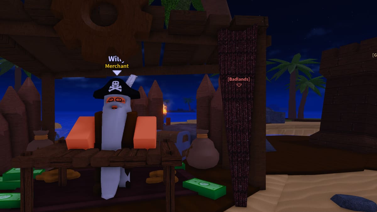 皮拉特斯堡的商人叫威利(Willy)站在布萊克胡德(Blackbeard)旁邊。他可以評估您的庫存併購買您的物品。